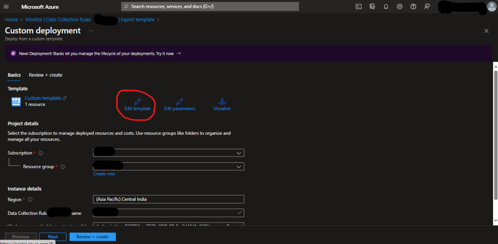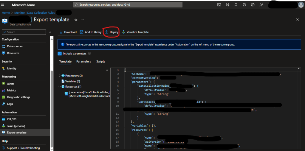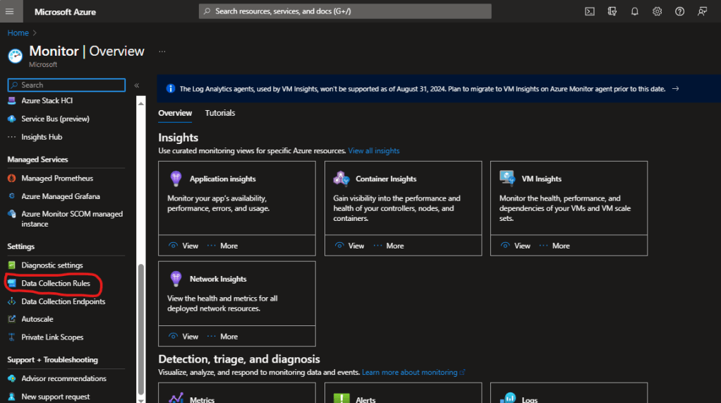 3. Locate the “Data Collection Rule” section within Azure Monitor.