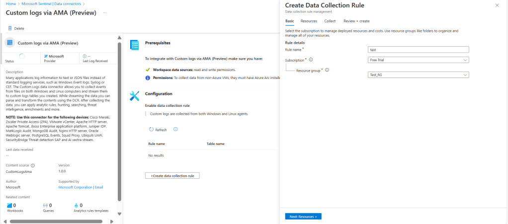 This guide walks you through a step-by-step process to configure custom log ingestion from text files stored in different paths using the Custom Logs via AMA data connector.