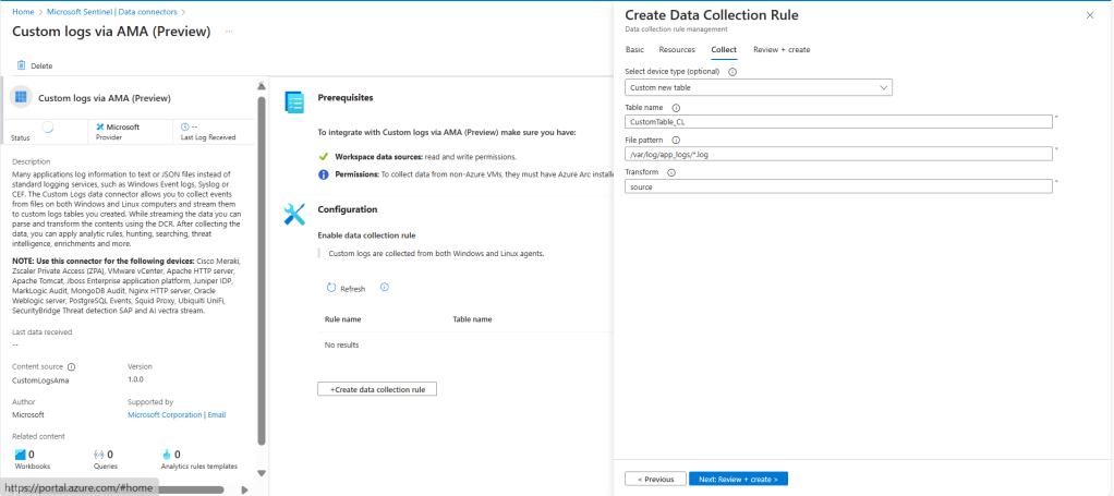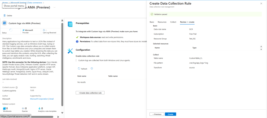 - Click Create to finalize the Data Collection Rule.